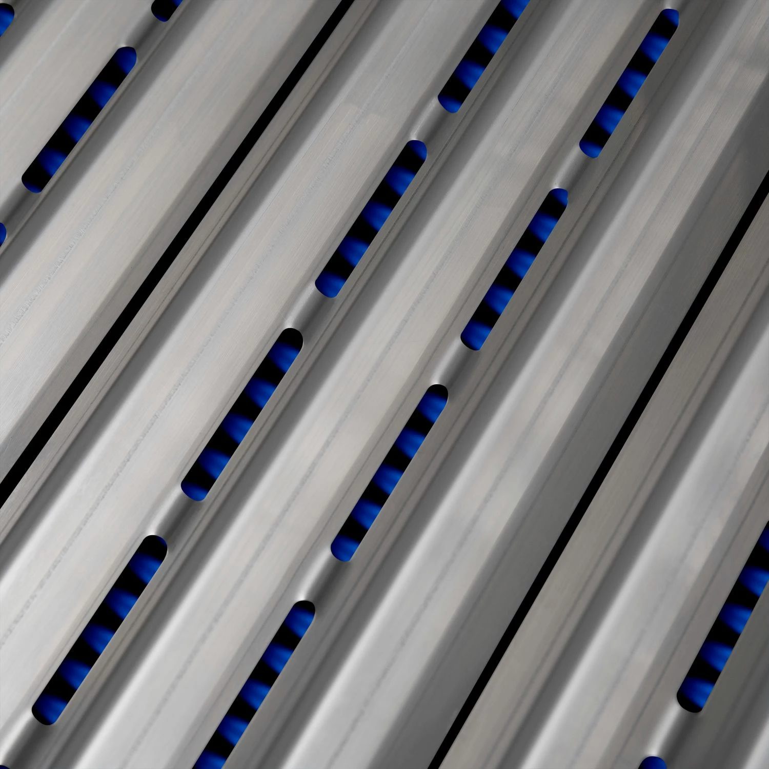 Die leistungsstarken Dual Tube Edelstahlbrenner mit jeweils 3,0 kW sind in einer hochwertigen Therma Cast Aluminiumguss Brennerwanne verbaut. Das Zusammenspiel der Dual Tube Brenner in Verbindung mit der geschlossenen Alugusswanne bietet besonders hohe Temperaturen und eine ideale Hitzeverteilung.