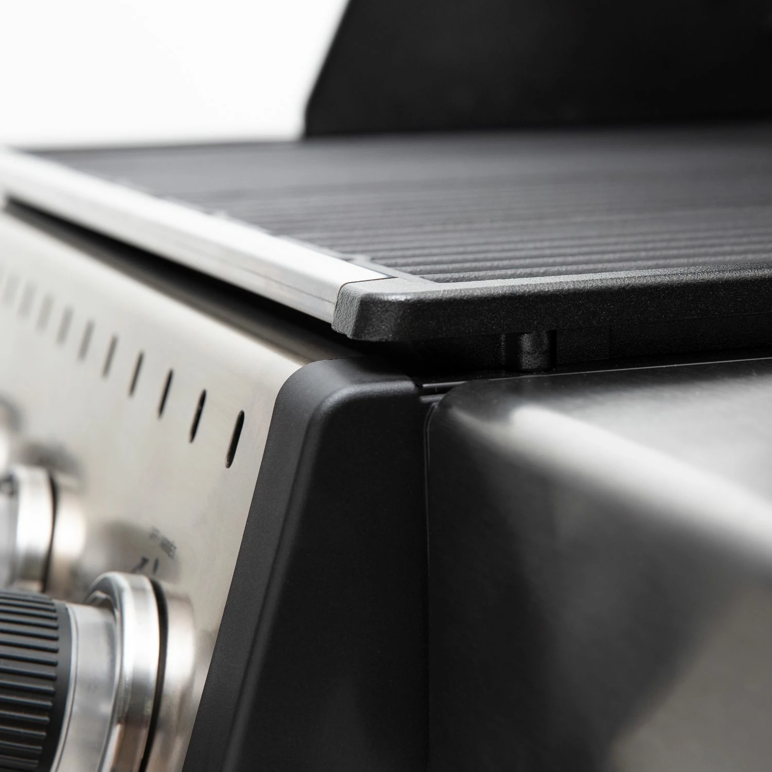 Der Broil King Baron 590 schafft Abhilfe in Sachen Platzproblem. Beide Seitenablagen lassen sich komfortabel mit Hilfe eines Klappmechanismus herunterklappen. So verringert sich die Stellfläche enorm und der Gasgrill findet auch auf kleinstem Raum Platz, wenn er mal nicht verwendet wird. Durch die Arretierung können beide Seitenablagen im heruntergeklappten Zustand sicher befestigt werden.
