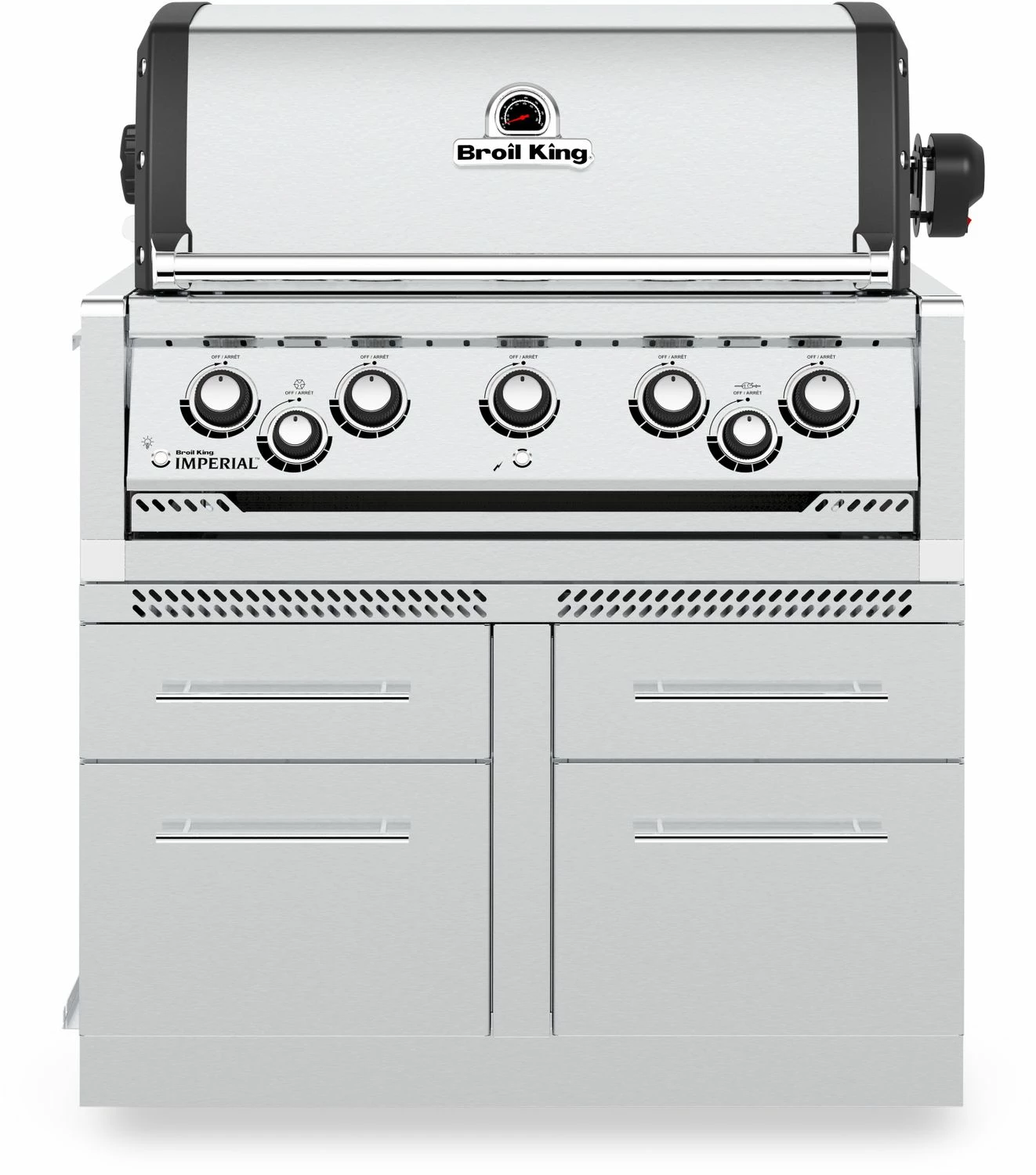 Der Grillschrank für 5-Brenner Einbaugrills von Broil King ist aus extrem hochwertigem 304 Edelstahl gefertigt und mit geräumigen Schubladen ausgestattet.