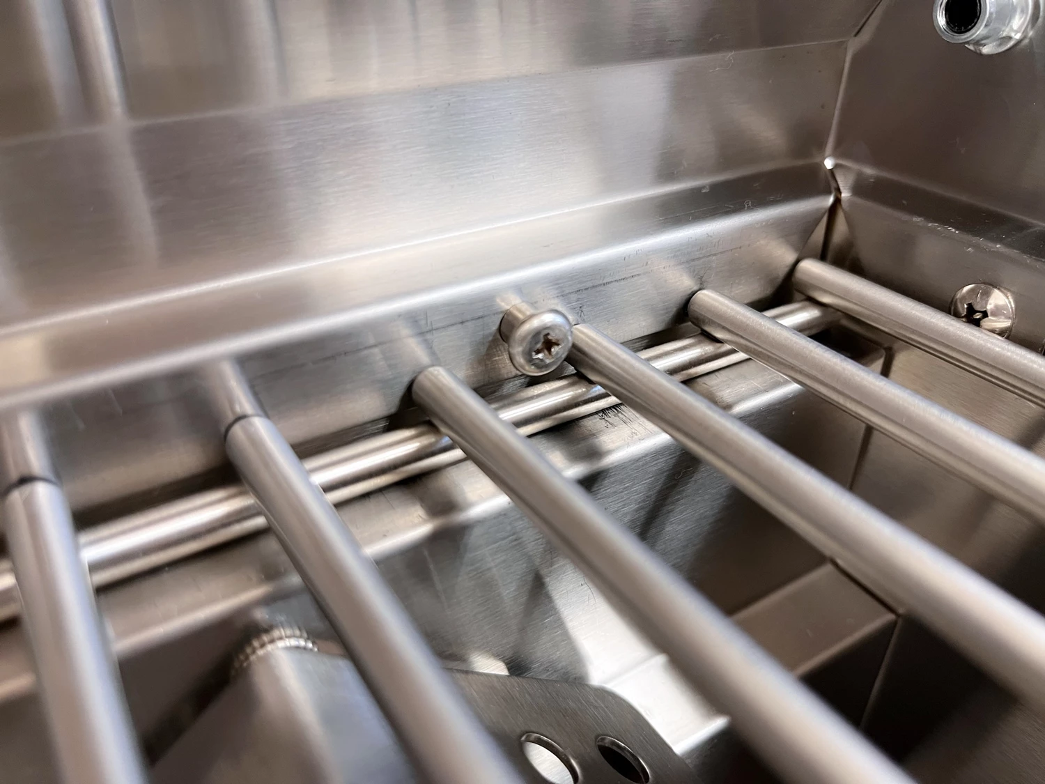 Damit während des Transports die Grillroste nicht im Garraum umherwackeln können, besitzt der G201E an der Rückseite des Garraums eine Grillrost Sicherung. Sie halten die Roste sicher an ihrem Platz, auch wenn der Grill hochkant getragen oder verstaut wird.