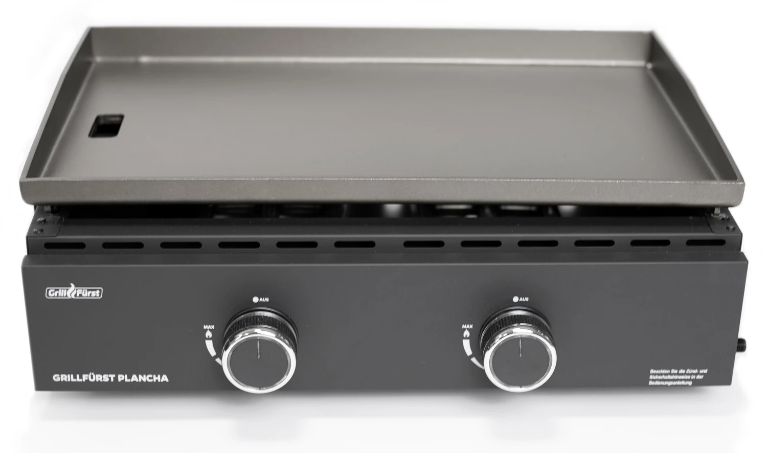 | Artikelbezeichnung: | Grillfürst Plancha Grill – 2 Brenner mit insgesamt 7 kW und Edelstahl Plancha – inkl. 2 Stk. Plancha Spatel und Grillzange |