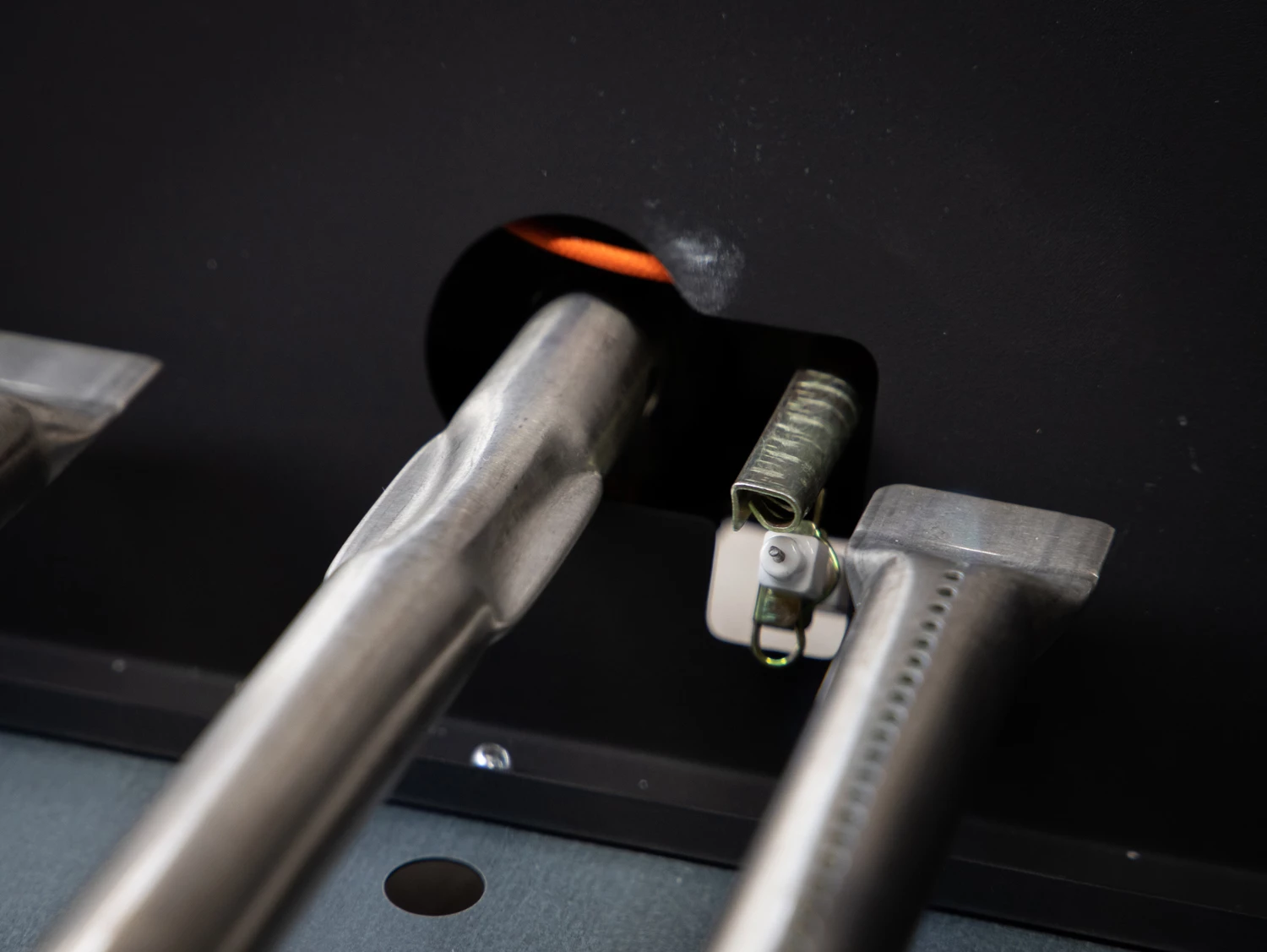 Jeder Brenner kann separat gezündet und reguliert werden, was auch unterschiedliche Temperaturzonen auf der Plancha zulässt. Damit die Zündung stets zuverlässig und sicher erfolgt, sitzt neben dem Brenner eine kleine Pilotflamme, welche beim Betätigen der Piezozündung den Brenner entzündet.