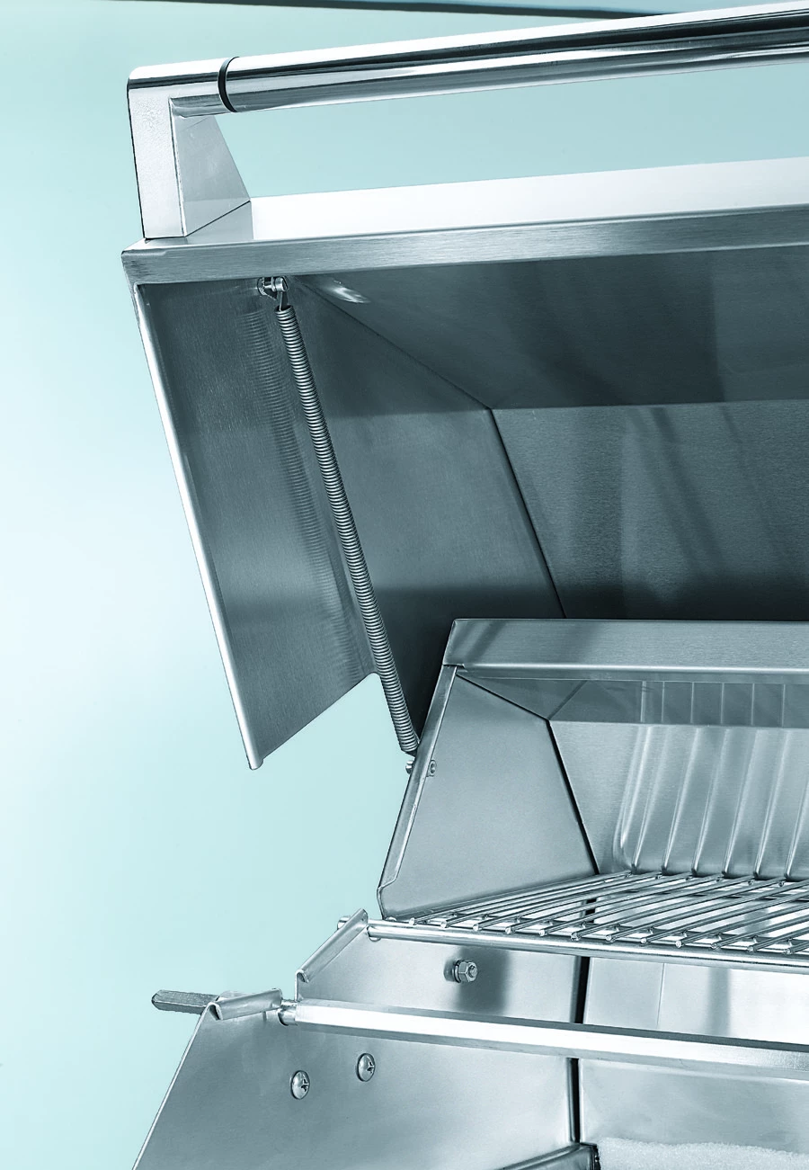 - Mitdrehender Griff und gefederter Zugassistent für schwere Grillhaube