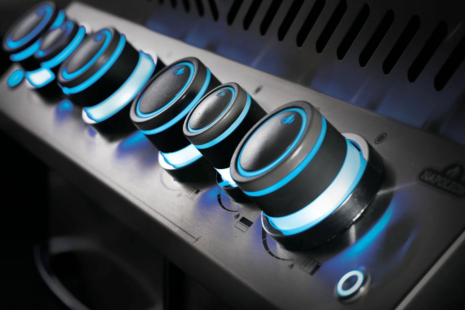 Der Napoleon Prestige 500 in Edelstahl mit Safety Glow Drehreglern