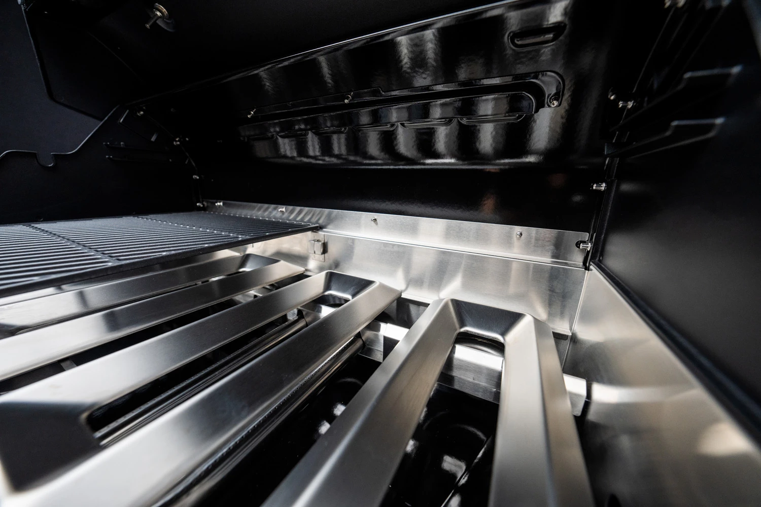 Über den Brennern sitzen die DGS Protection Bars, welche primär zwei Aufgaben besitzen: Sie schützen die Brenner vor herabtropfendem Bratensaft und Fett, welche am Brenner vorbei nach unten geleitet werden. Hierdurch wird ein gefürchteter Fettbrand effektiv vermieden. Als angenehmen Nebeneffekt hiervon verdampft die Flüssigkeit sofort auf dem heißen Metall und lagert sich als leckerer Grillgeschmack am Grillgut an.